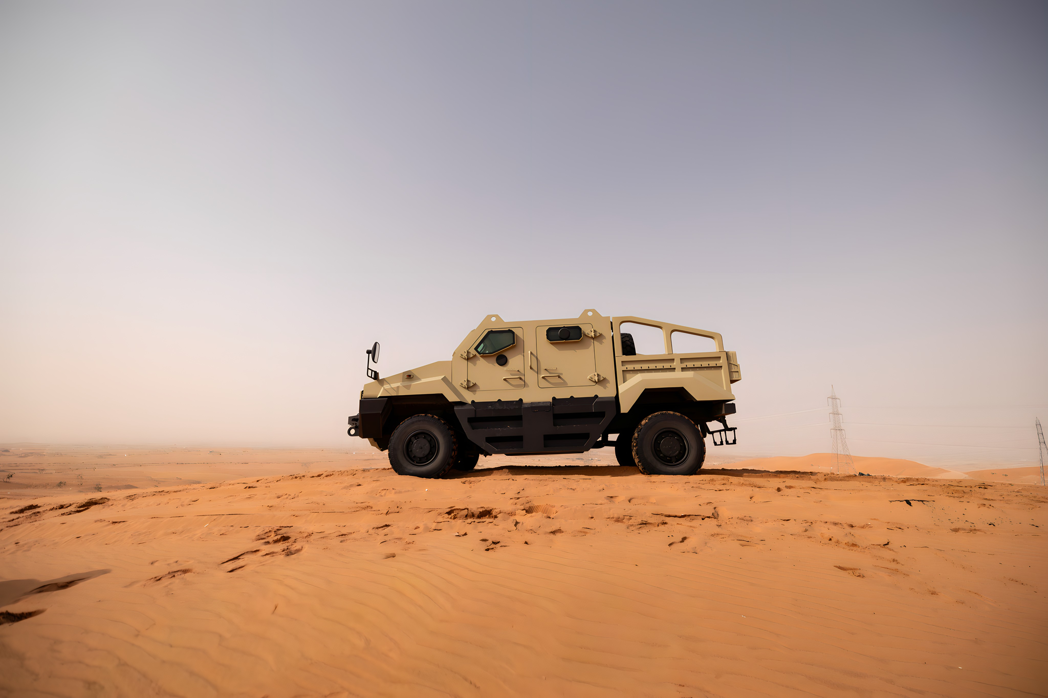 Saudi-engineered lightweight 10-ton MRAP optimized for rapid deployment with STANAG Level II protection (upgradeable) and robust mobility in high-threat environments.